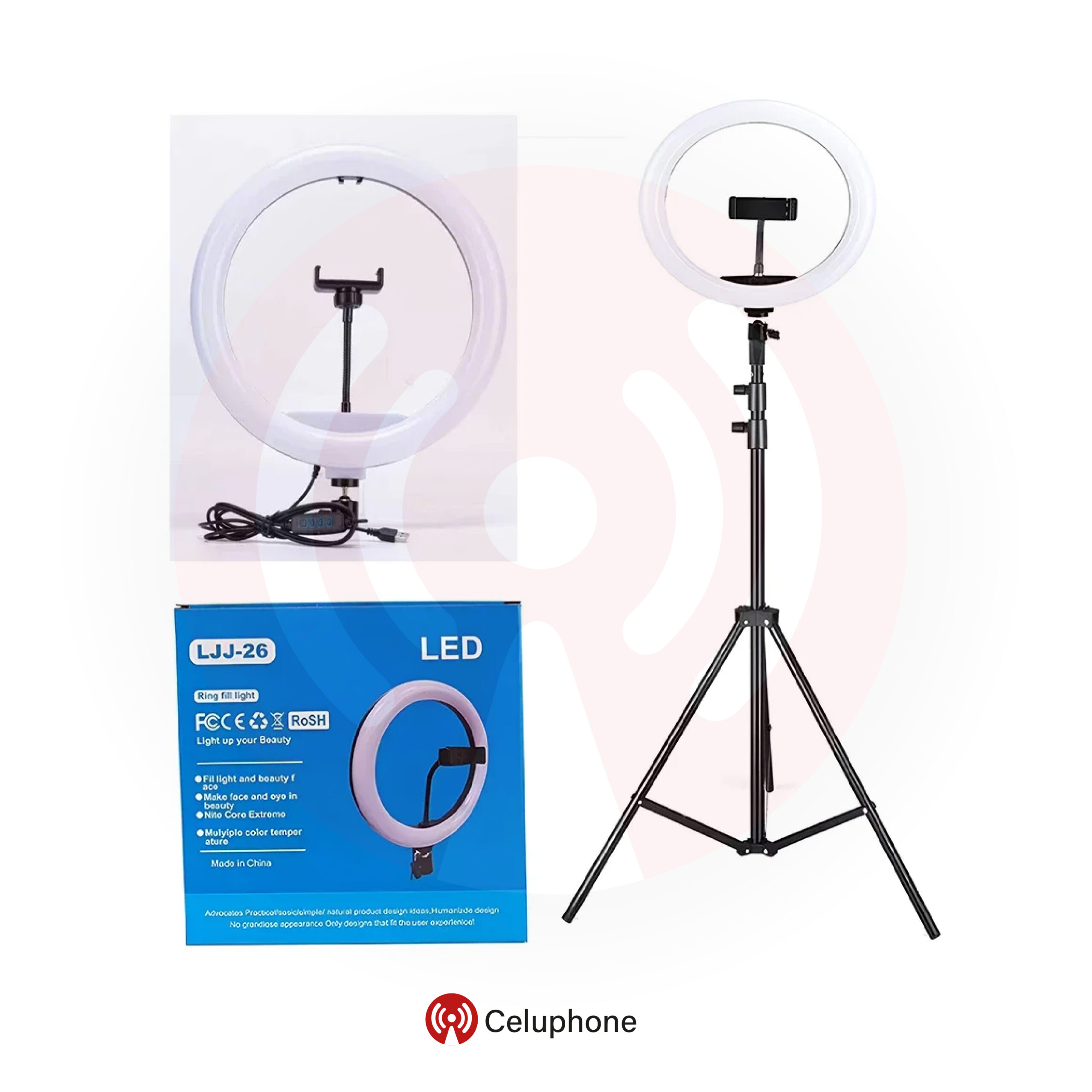 Sé el primero en valorar “Aro de Luz de 26″ con Soporte para Celular + Tripode de 2.1m”