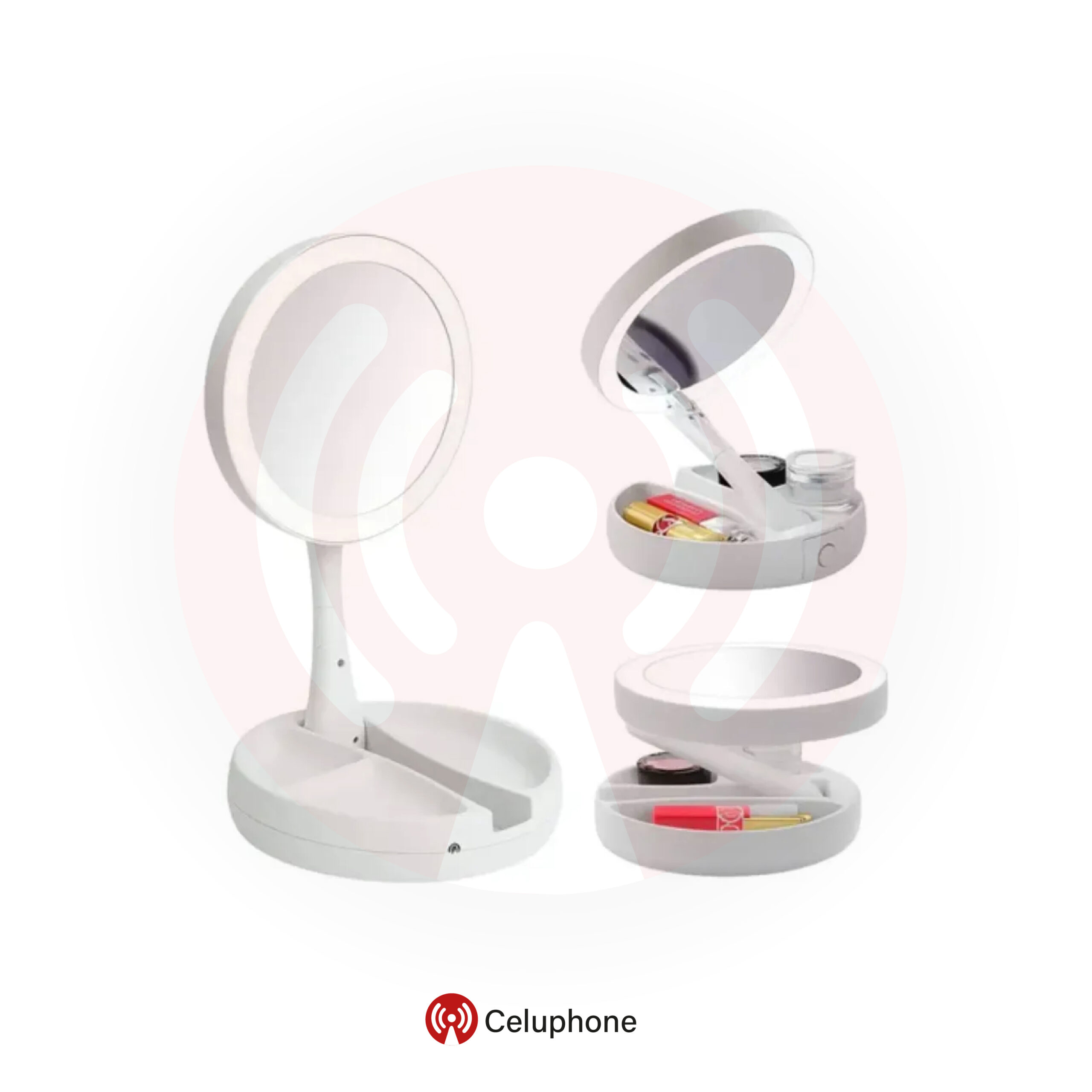Espejo Doble Cara con Luz Led con Organizador
